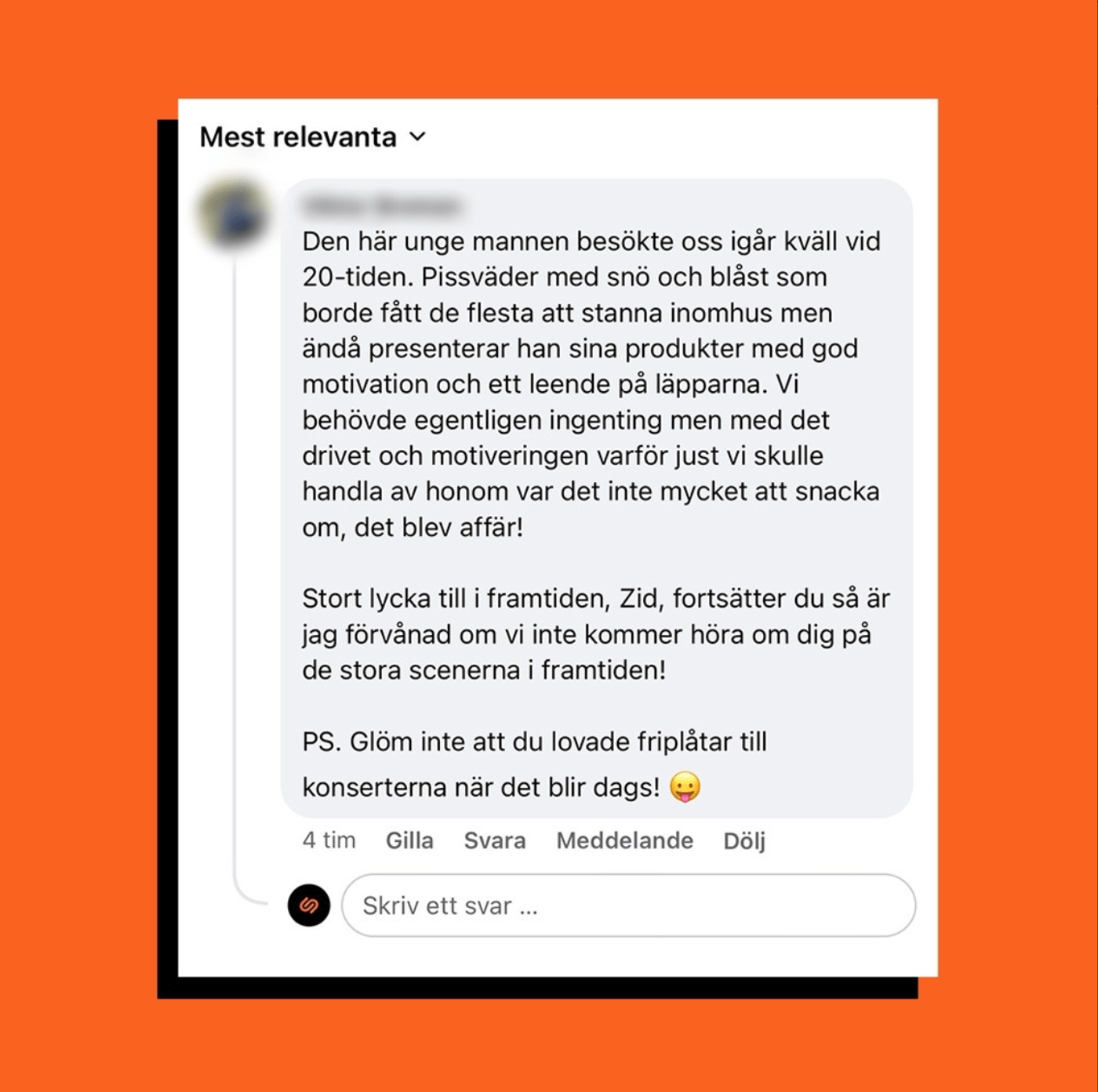 Men ibland - ytterst sällan - så händer det att en ”vanlig” nöjd kund tar sig tiden att skriva några fina rader om våra produkter, eller ännu bättre - våra fantastiska säljare.